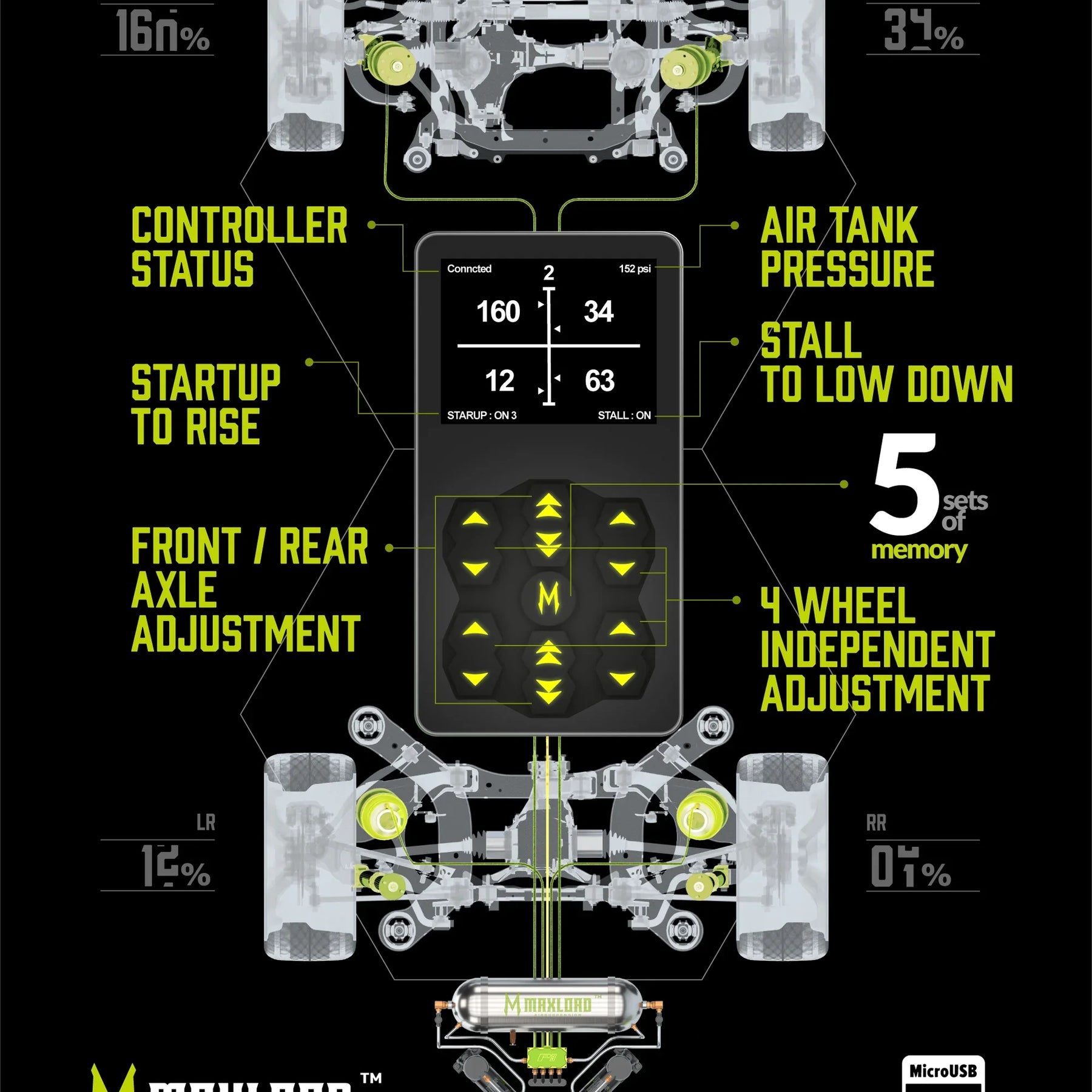 Here we have a fully digital air suspension management system by Maxload stance. The original designer of the P1 management system that many companies have rebranded and marked up.